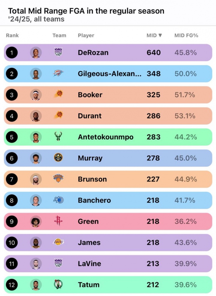 字母哥:我中距离联盟第2&我、德罗赞、KD、布克、还有一个我忘了