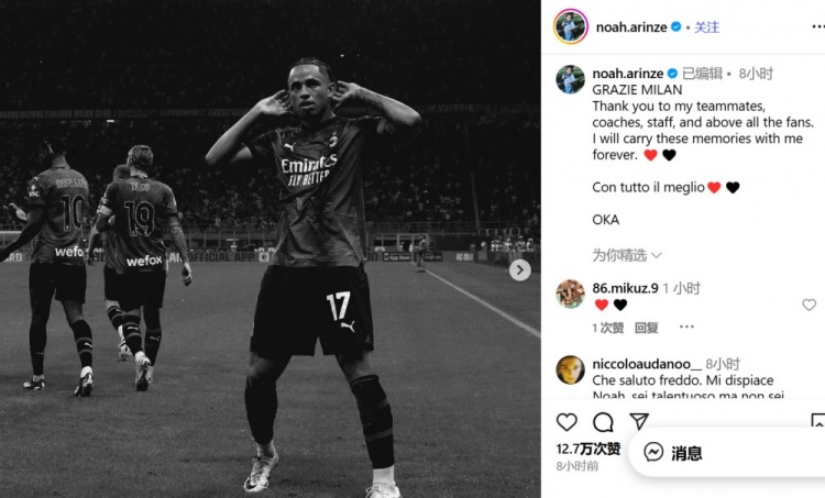 开云入口-奥卡福告别米兰:谢谢米兰,感谢队友、教练、工作人员和球迷们 xiaoqiao 2025年08月22日 19:37 124 0 8月22日讯 在永久转会加盟利兹联后,奥卡福发文告别了米兰。奥卡福写道:“谢谢米兰!感谢我的队友、教练、工作人员,尤其感谢球迷们。我将永远珍藏这些回忆。❤️🖤”“祝一切顺利 ❤️🖤——奥卡福。”